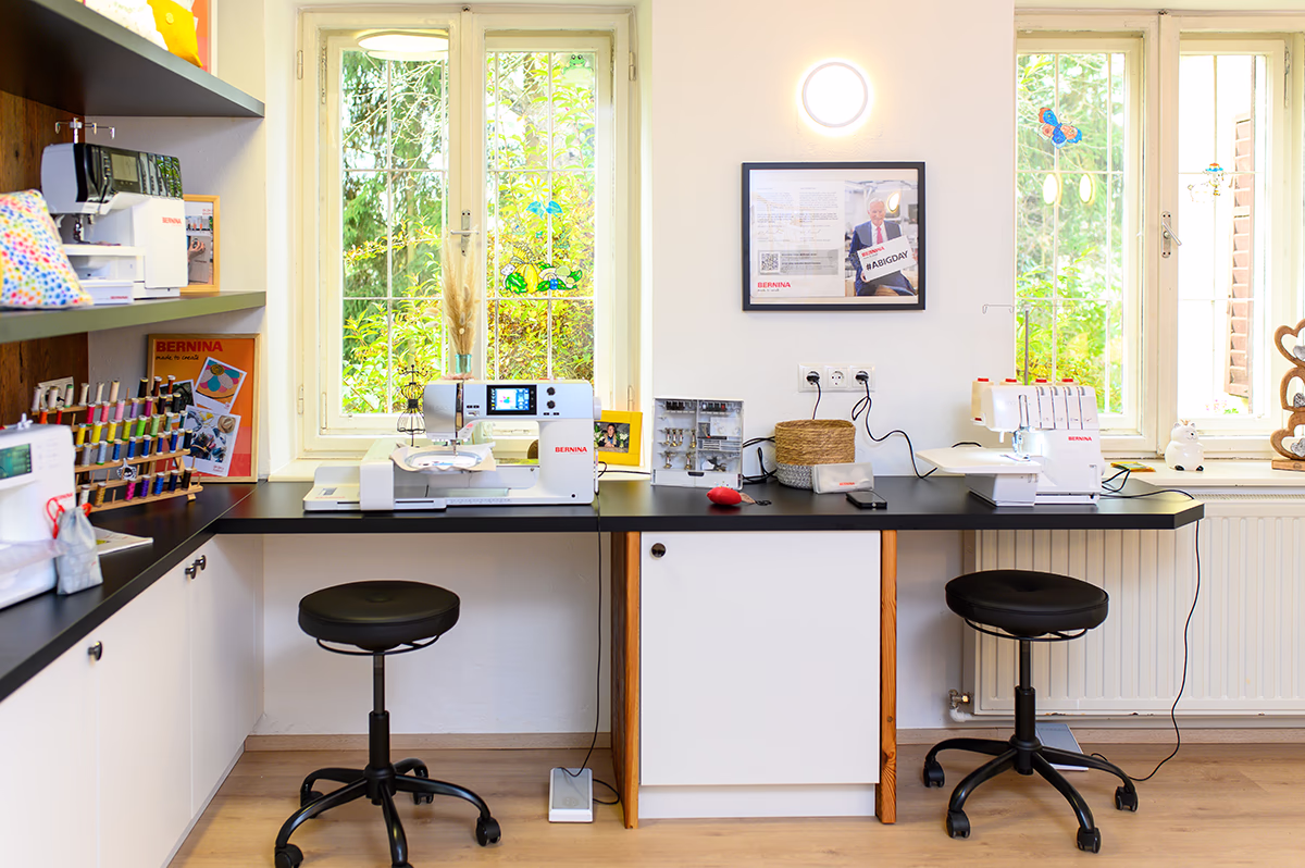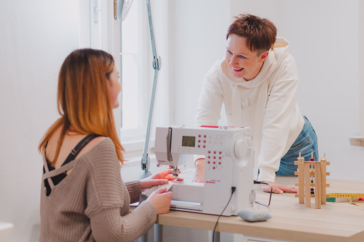 Die Workshops schenken dir: Zeit nur für dich, Freude am Nähen und entspannte Gespräche in kleinen Gruppen. Genäht wird auf den besten Bernina-Nähmaschinen, und nebenbei verraten wir dir spannende Tricks & Techniken, die deine Kreativität beflügeln.